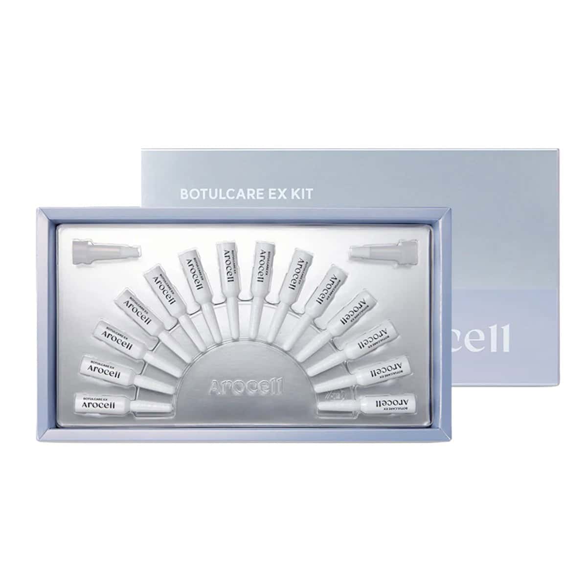 AROCELL Botulcare Ex Kit is an intensive ampoule treatment designed to target fine lines and improve skin elasticity with high performance actives.