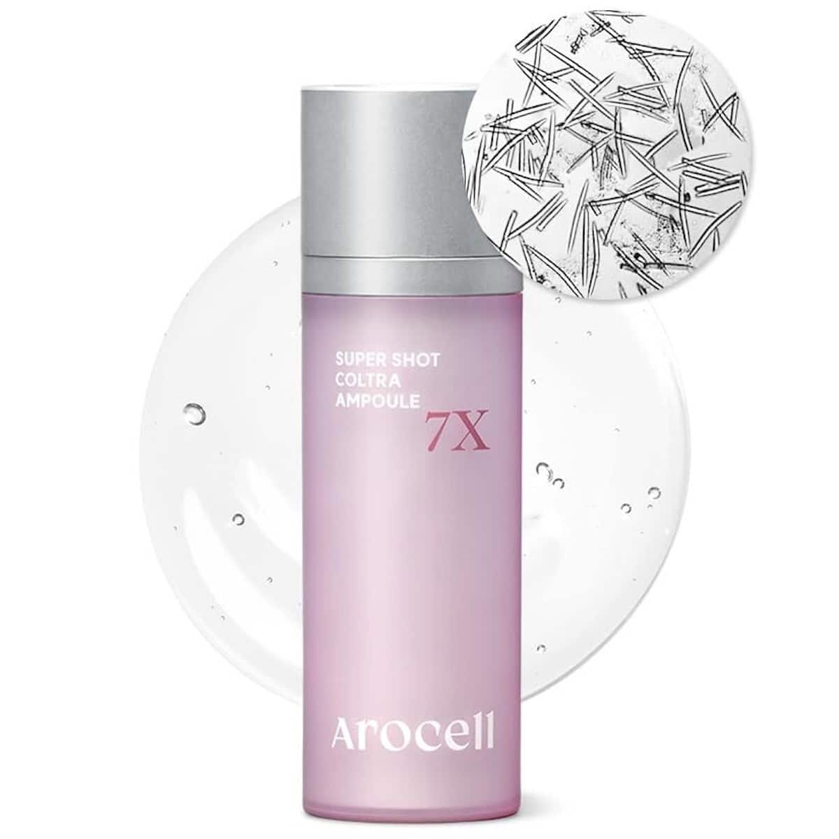 AROCELL Super Shot Coltra Ampoule 7X boosts firmness, hydration, and skin repair with collagen, peptides, and niacinamide.
