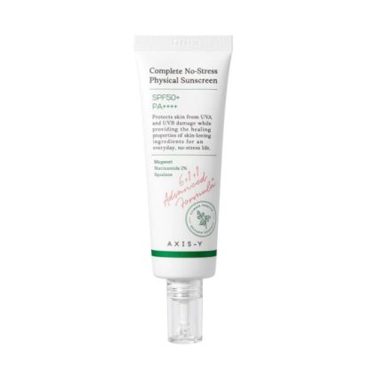 AXIS-Y Complete No-Stress Physical Sunscreen is the ultimate solution for your skin and the environment, infused with Mugwort, Niacinamide, and Squalane.