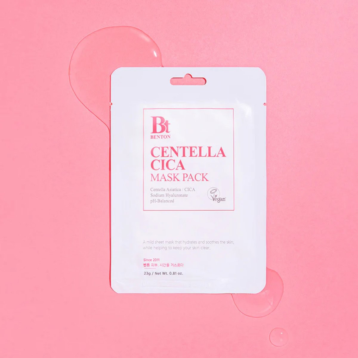 ThThe BENTON Centella Cica Mask is a soothing sheet mask designed to calm and hydrate sensitive or irritated skin.