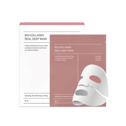 BIODANCE Bio-Collagen Real Deep Mask deeply rejuvenates skin with ultra-low molecular collagen and oligo-hyaluronic acid for elasticity and radiance.