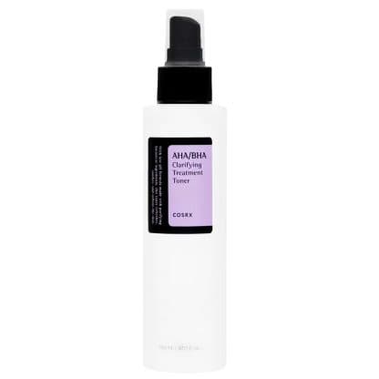 COSRX clarifying toner with AHA and BHA to gently exfoliate, smooth skin texture, and help prevent breakouts.