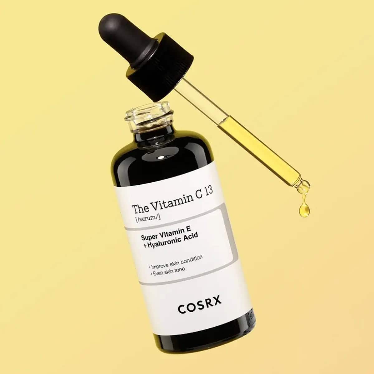COSRX vitamin C serum with 13% pure ascorbic acid to brighten skin tone, boost radiance, and support antioxidant protection.
