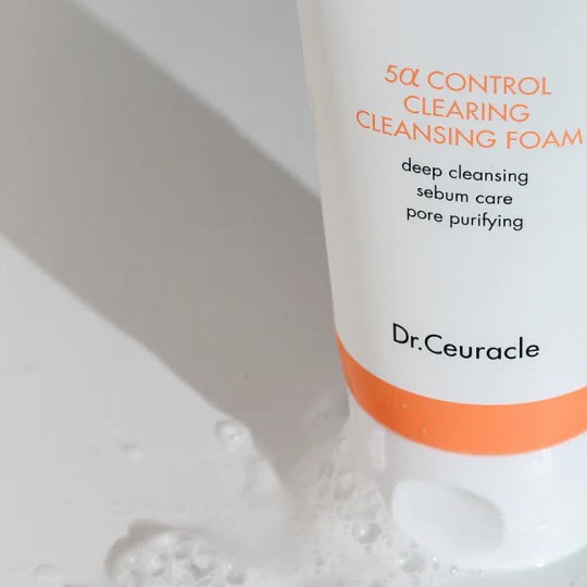 The 5α Control Clearing Cleansing Foam from Dr. Ceuracle is a deep cleansing foam that effectively cleanses, soothes, and addresses excess sebum in one step.