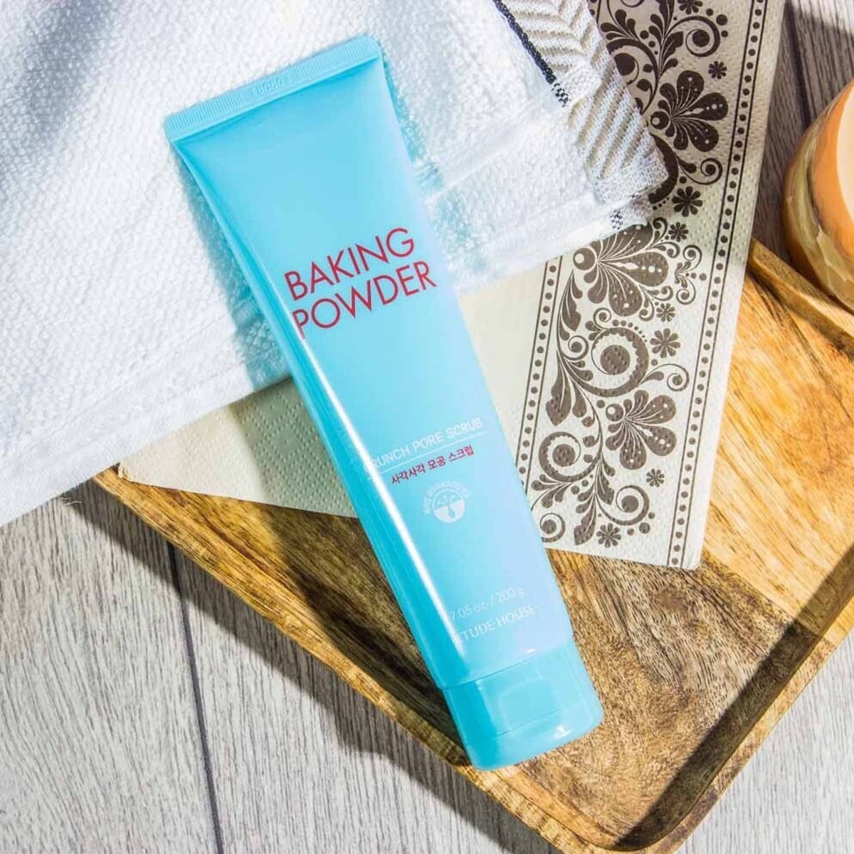 ETUDE Baking Powder Crunch Pore Scrub deeply cleanses and exfoliates with over 40% baking powder, offering a cooling effect for refreshed skin.