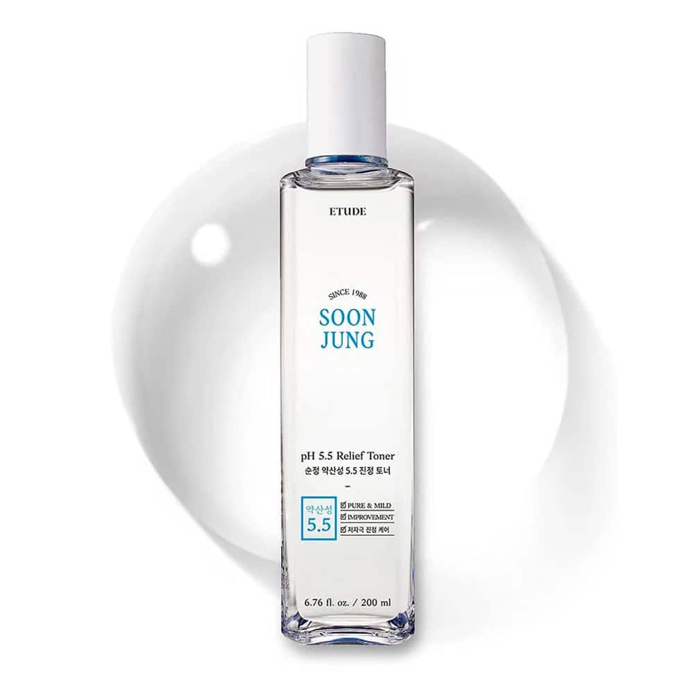 ETUDE Soon Jung pH 5.5 Relief Toner delivers gentle hydration and barrier support for sensitive or irritated skin.