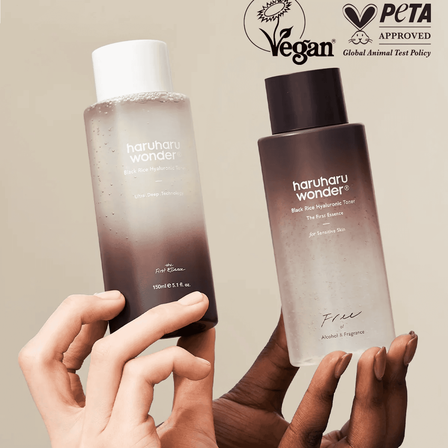 HARUHARU WONDER toner hydrates and soothes sensitive skin with fermented black rice extract and hyaluronic acid.