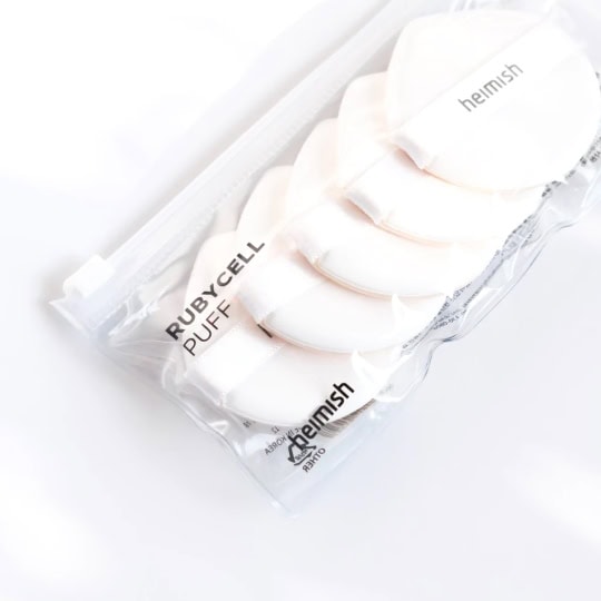 A set of five replacement Rubycell Puffs for the Heimish Artless Cushion foundation or any other liquid foundation, BB and CC creams.