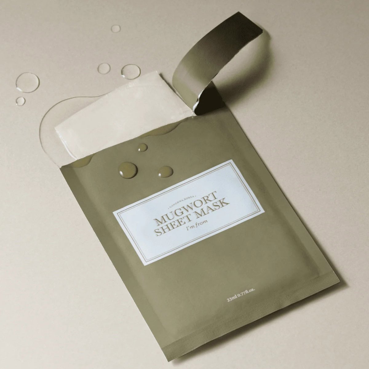 I’M FROM Mugwort Sheet Mask soothes and hydrates sensitive skin with mugwort extract and calming botanical ingredients.