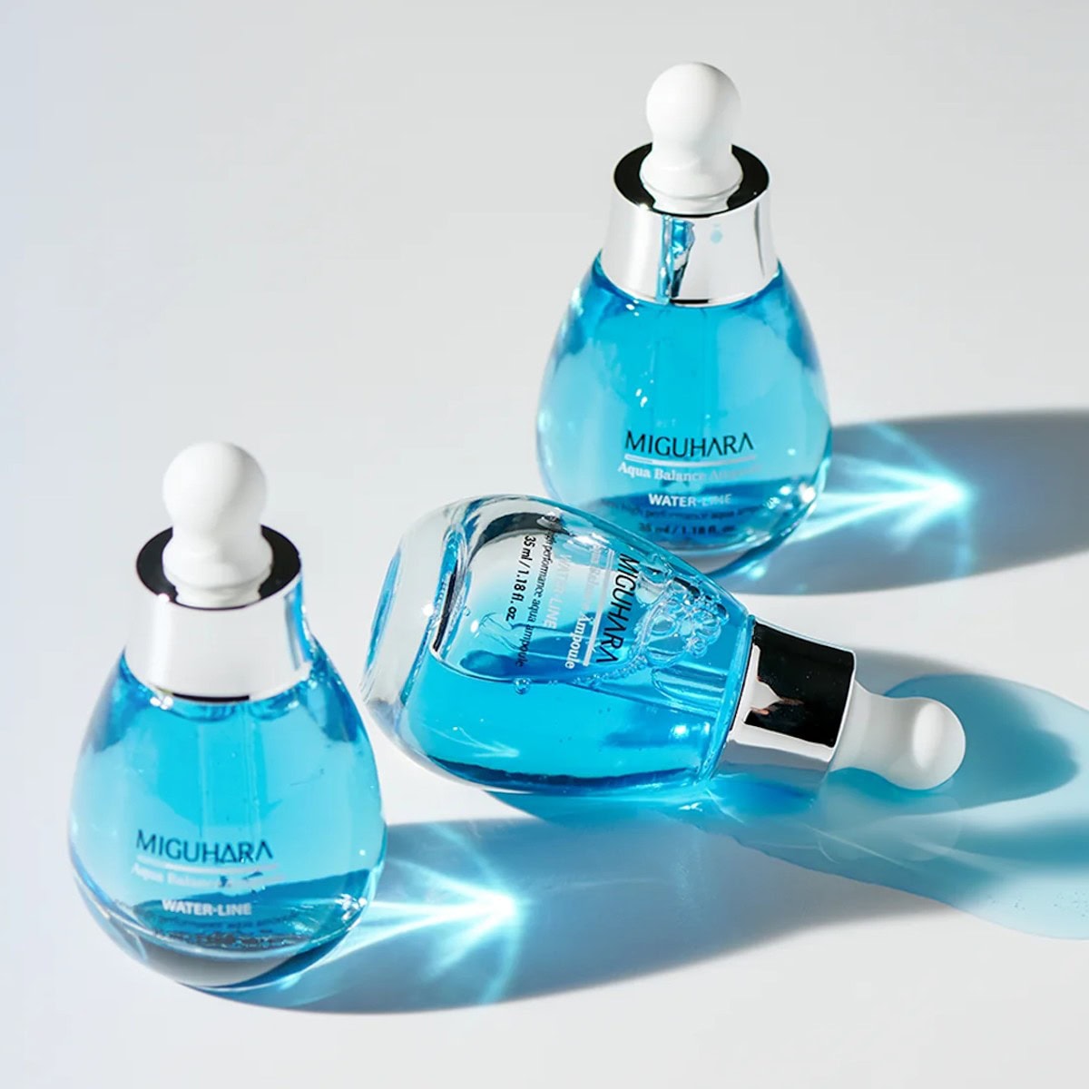 MIGUHARA’s Aqua Balance Ampoule hydrates and soothes skin with Glyceryl Glucoside and Green Tea Extract.