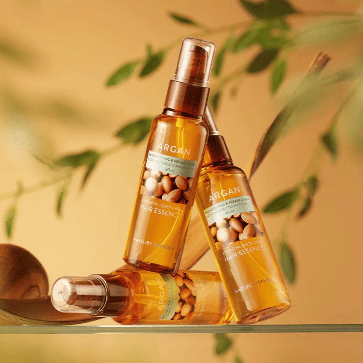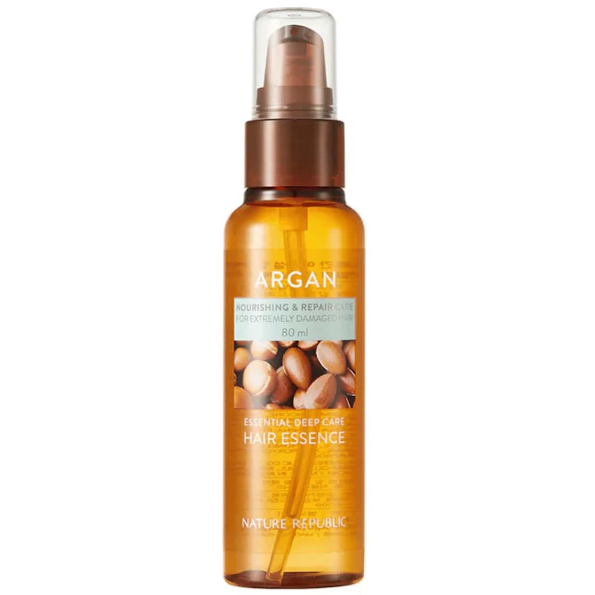 NATURE REPUBLIC Argan Essential Moisture Hair Oil is a lightweight silicone-based oil designed to smooth frizz and enhance shine with argan and botanical oils.