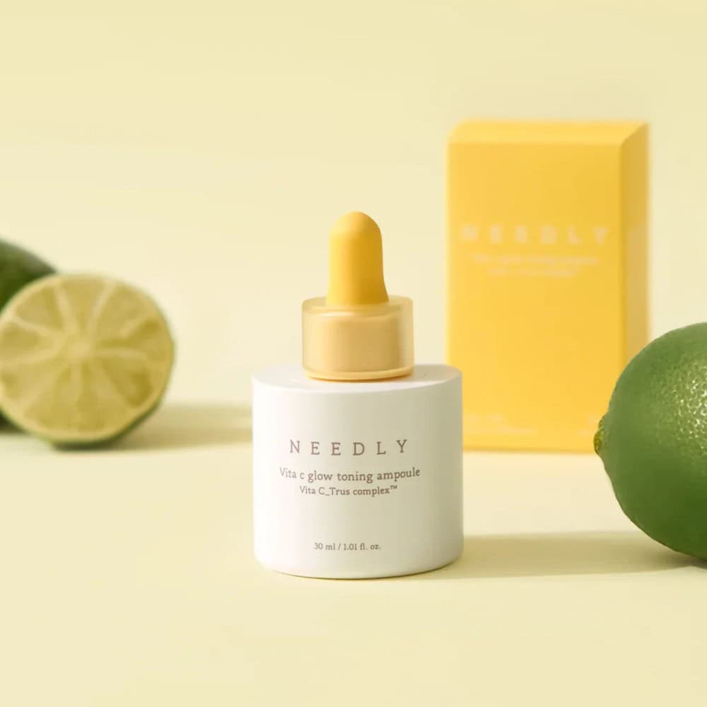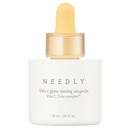 NEEDLY Vita C Glow Toning Ampoule brightens dull skin and supports even tone with vitamin C, niacinamide and antioxidant botanicals.
