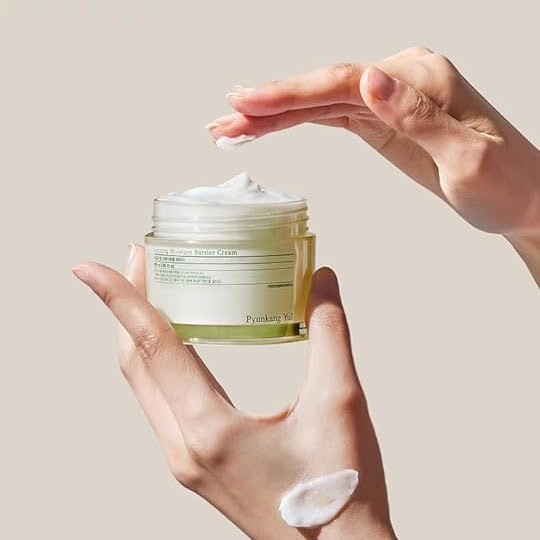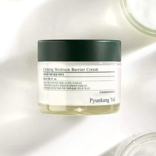 PYUNKANG YUL Calming Moisture Barrier Cream is formulated with Centella Asiatica, Tea Tree, and Honeysuckle extracts to soothe sensitive and irritated skin.