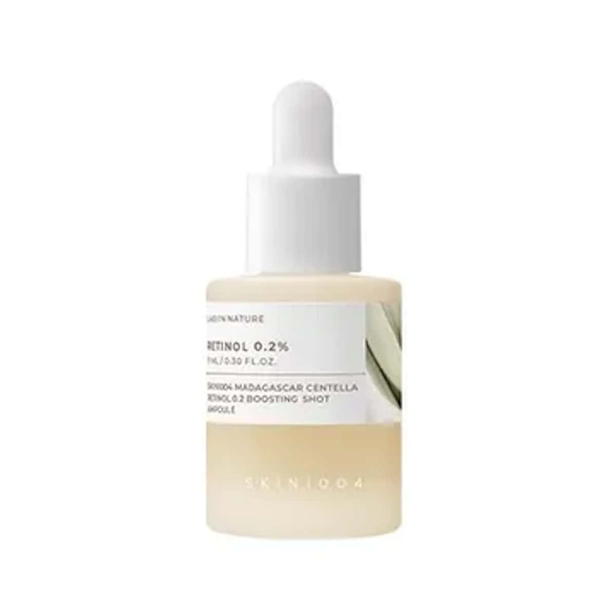 SKIN1004 Madagascar Centella Retinol 0.2 Boosting Shot Ampoule helps smooth texture and refine pores with retinol 0.2 and centella extract for fresher looking skin.