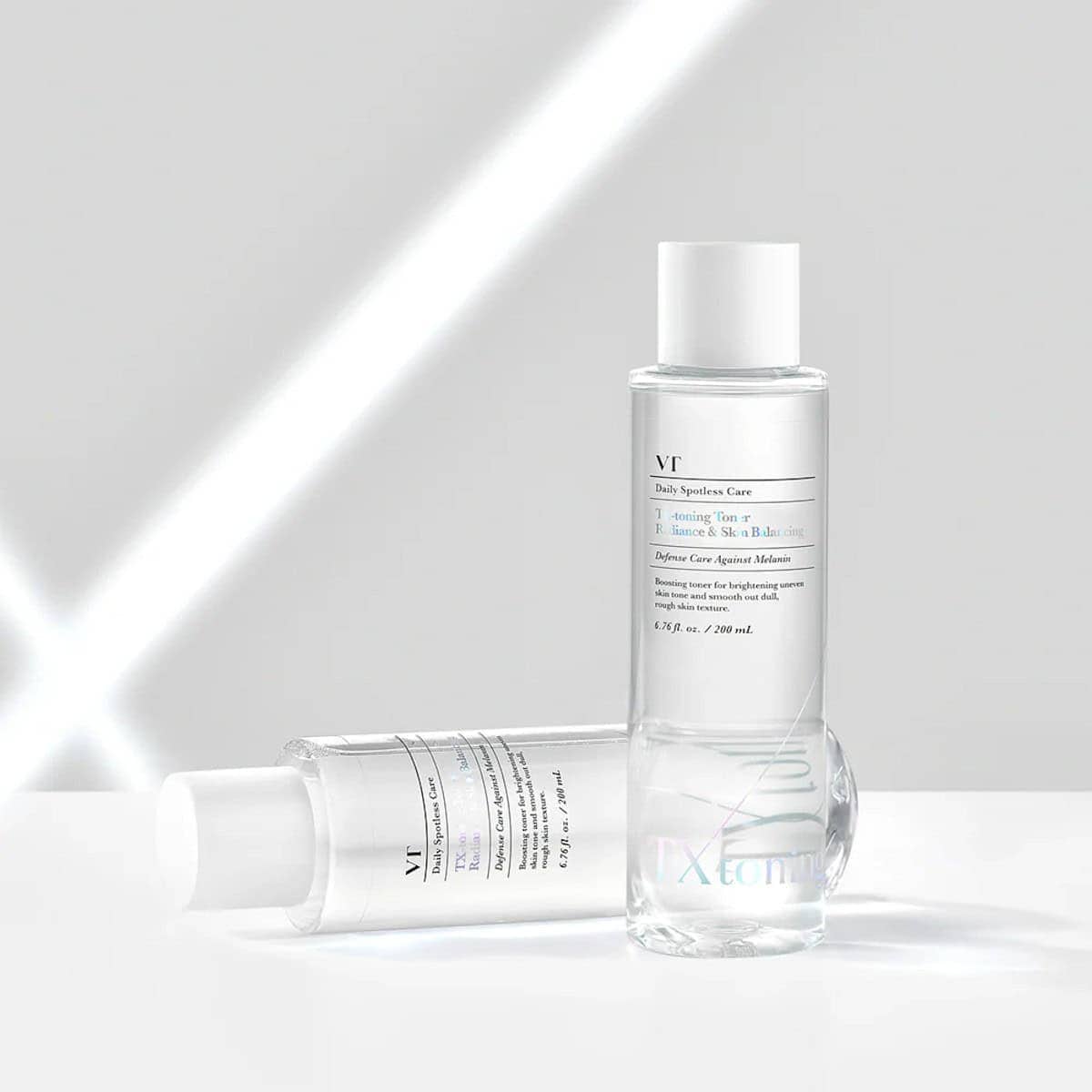 VT COSMETICS TX-Toning Toner evens tone and hydrates with tranexamic acid, niacinamide, glutathione, papain, ceramide NP, centella and squalane.